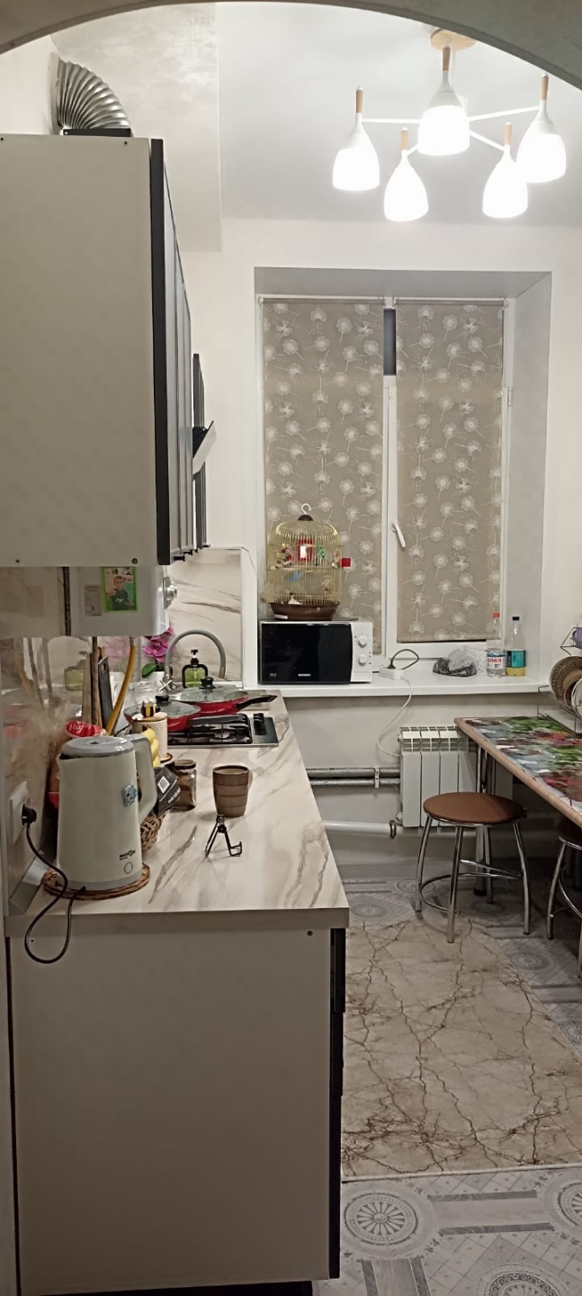 В квартире сухо и тепло, большое количество солнечного света. Высокие потолки.
