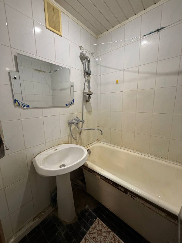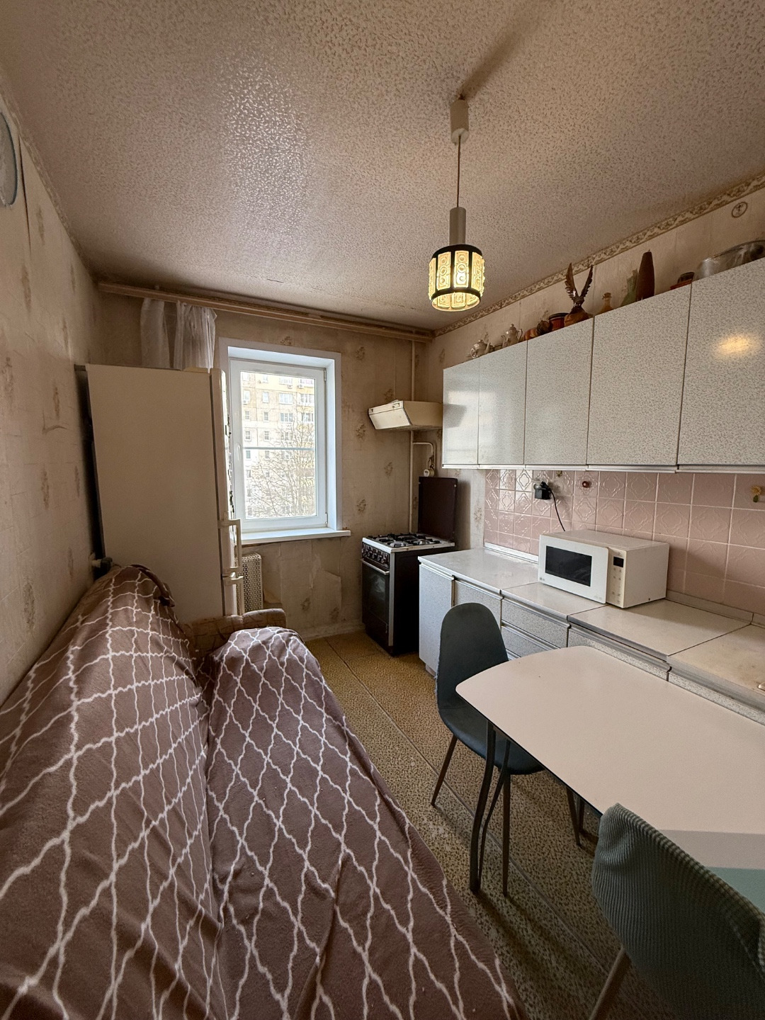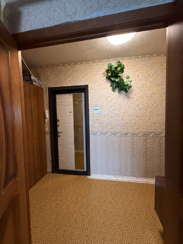 Санузел раздельный. Везде пластиковые окна. Качественная входная дверь. Напольное покрытие на кухне и в одной комнате — линолеум, в другой — ламинат. На стенах — обои. Натяжной потолок в комнате.