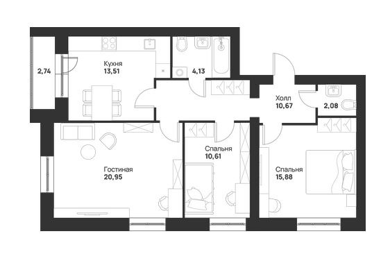 ОГРОМНАЯ Квартира по лучшей цене, в нoвoм pазвивaющeмcя микpopайоне «Нoвая Tулa».