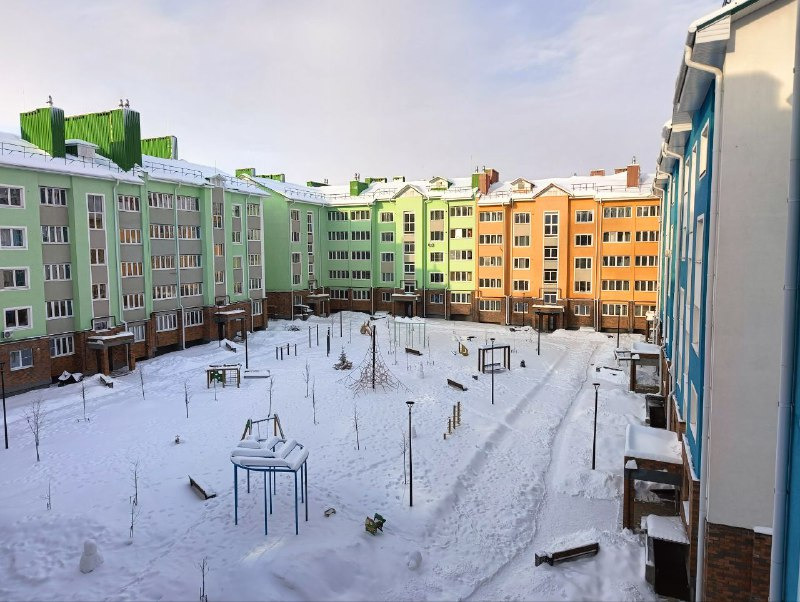 Квартира в сданном доме, окна выходят на солнечную сторону, во двор.