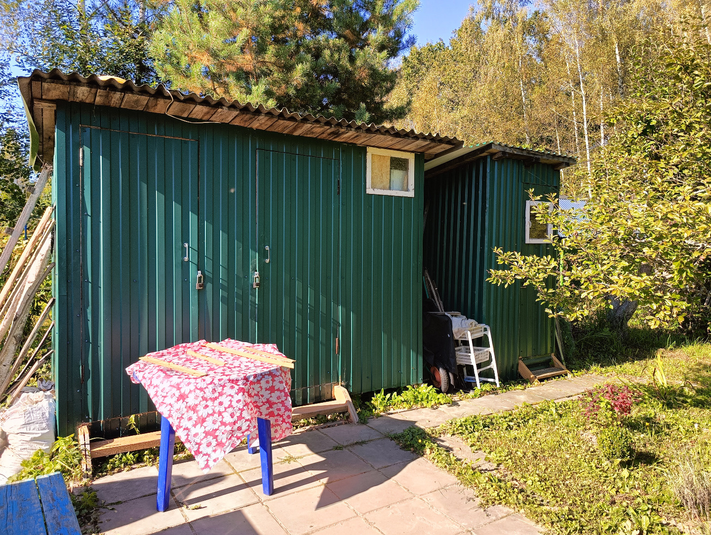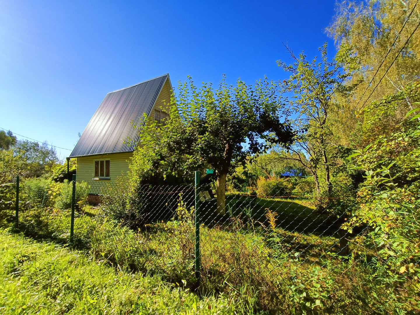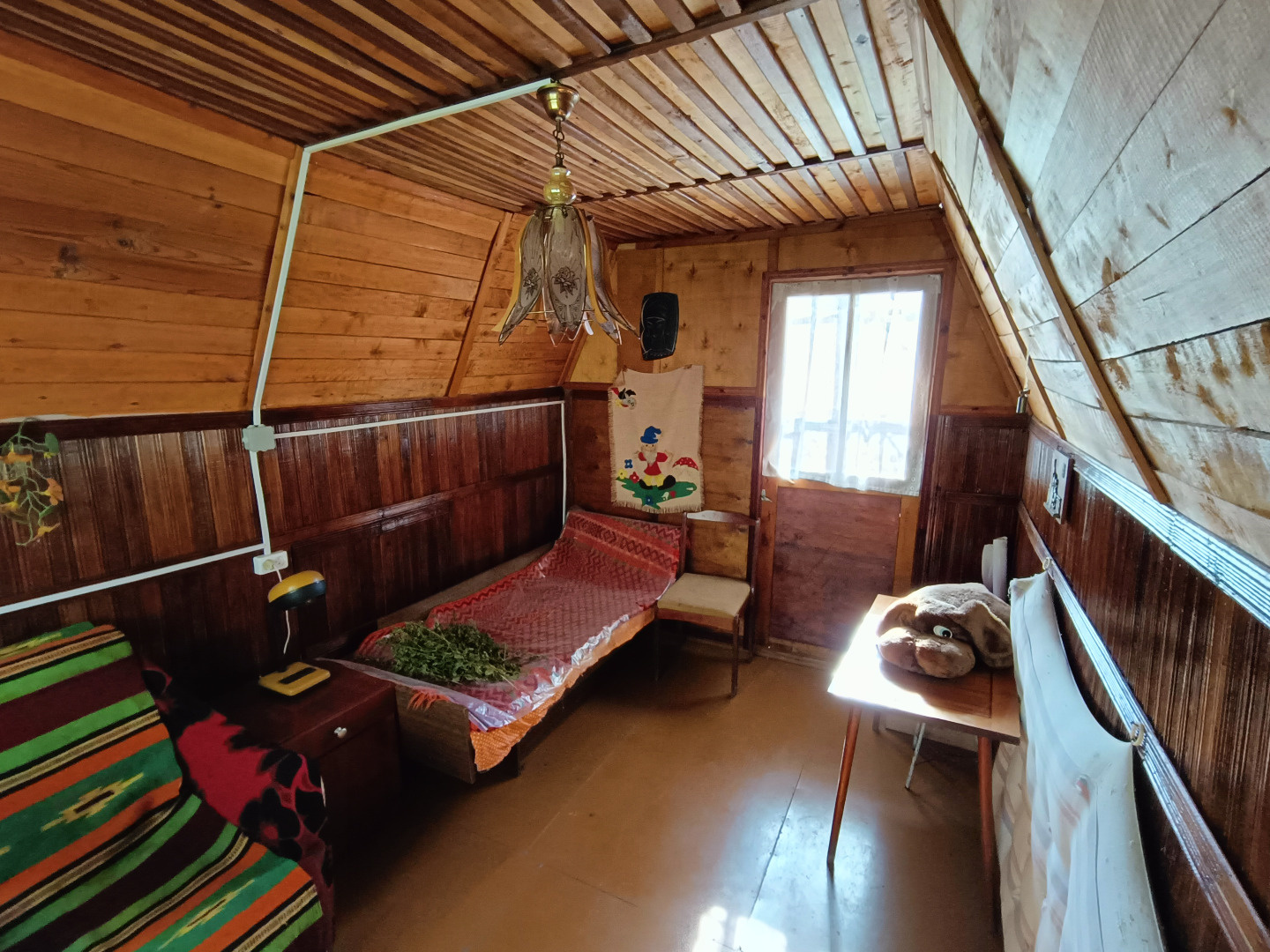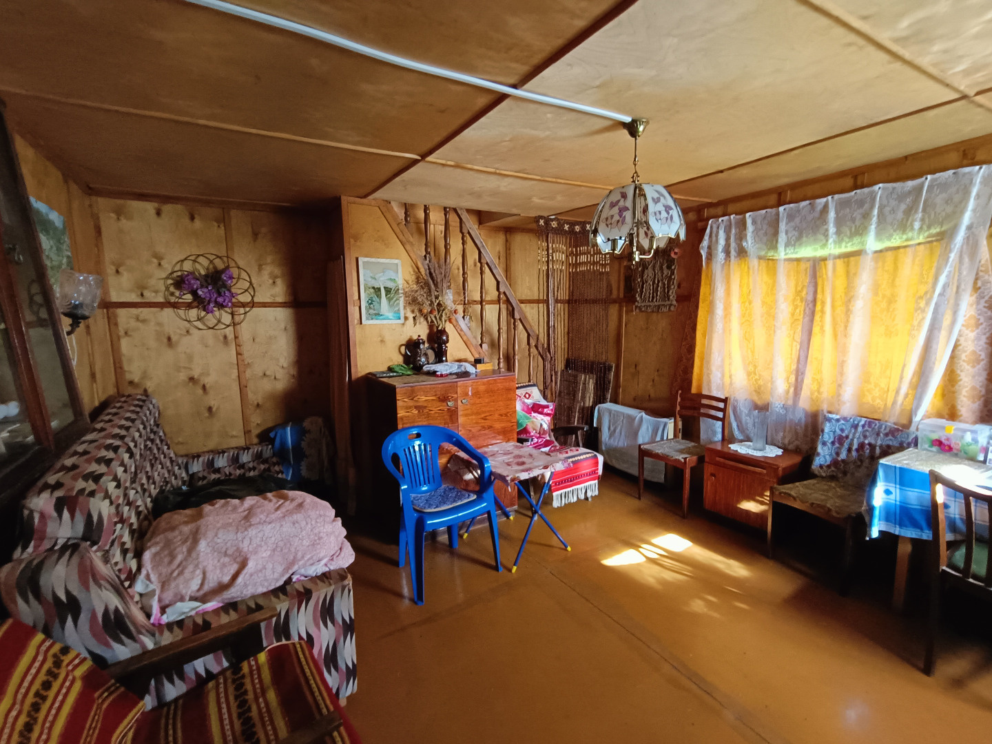 Домик стоит на высоком фундаменте, что позволяет хранить под ним инвентарь. Дом сухой, сделан из дерева. При входе есть небольшая беседка. В доме кухня, отведенное место для сан. процедур, большая комната и выход на мансарду, где расположена еще одна комната. Все, что видите на фото - остается, в том числе холодильник, микроволновка, чайник, вся мебель, телевизор (с антенной) и т.д.