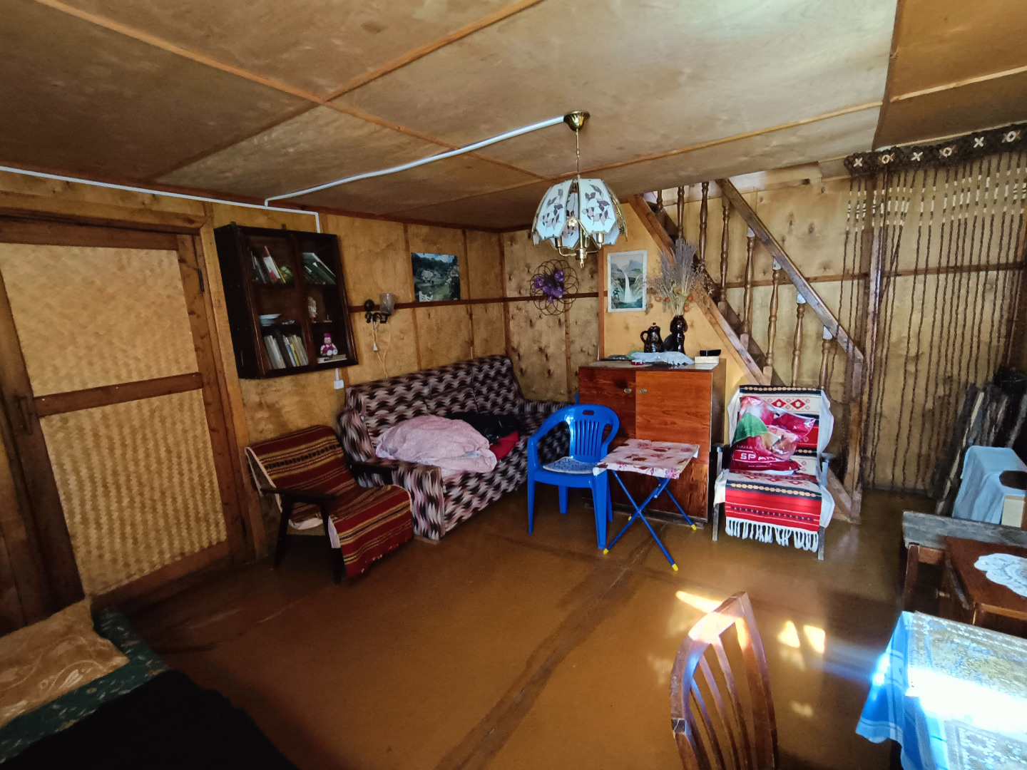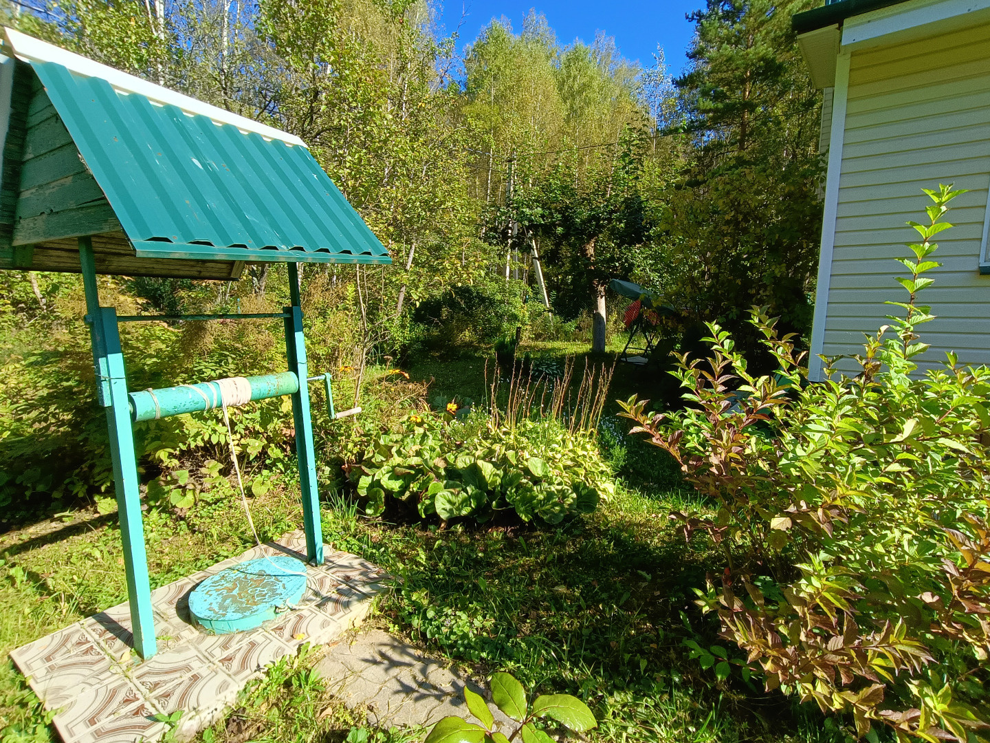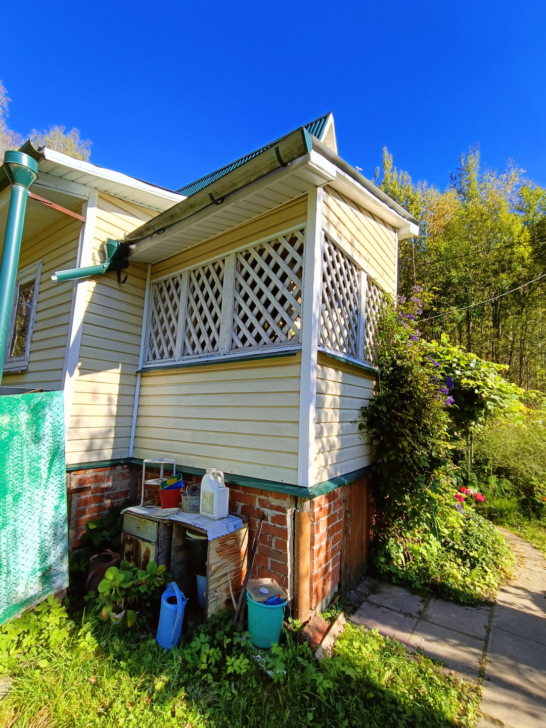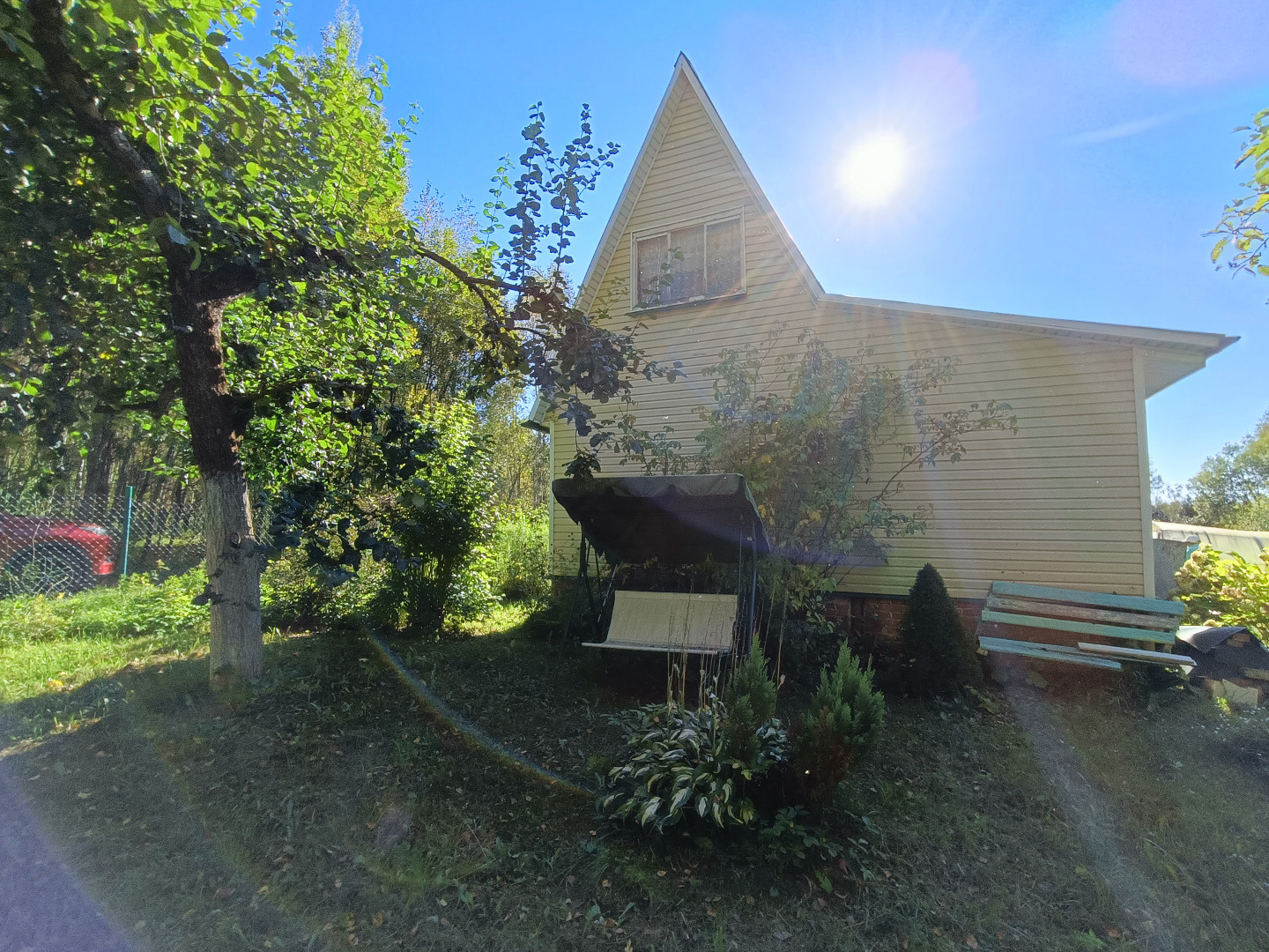 Домик стоит на высоком фундаменте, что позволяет хранить под ним инвентарь. Дом сухой, сделан из дерева. При входе есть небольшая беседка. В доме кухня, отведенное место для сан. процедур, большая комната и выход на мансарду, где расположена еще одна комната. Все, что видите на фото - остается, в том числе холодильник, микроволновка, чайник, вся мебель, телевизор (с антенной) и т.д.