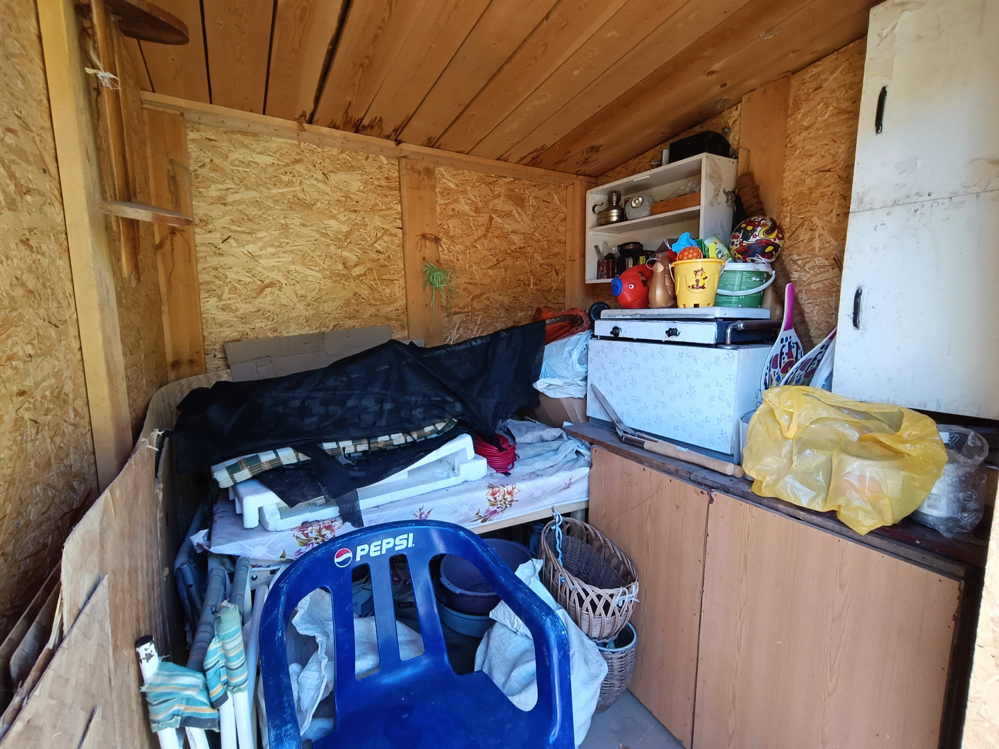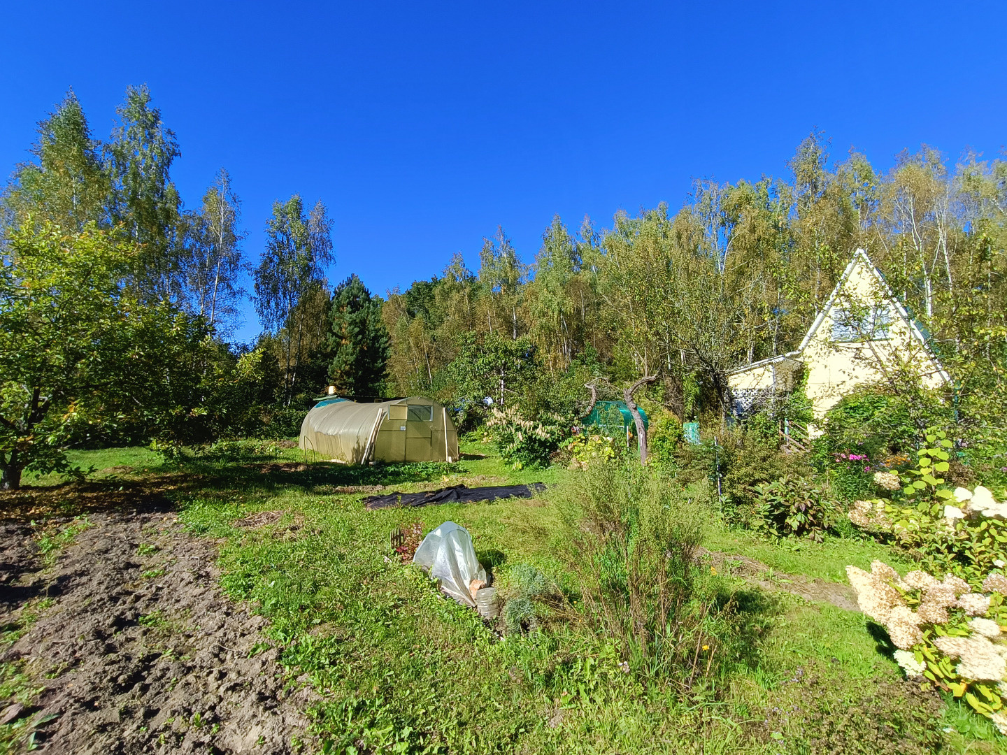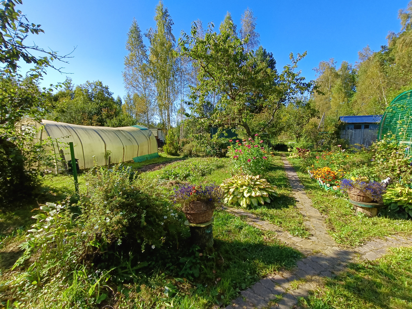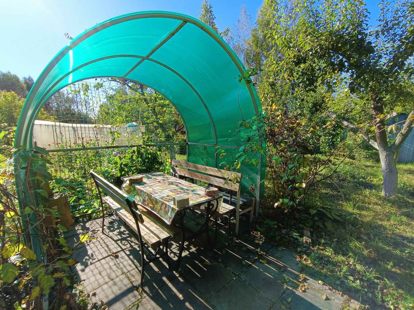Домик стоит на высоком фундаменте, что позволяет хранить под ним инвентарь. Дом сухой, сделан из дерева. При входе есть небольшая беседка. В доме кухня, отведенное место для сан. процедур, большая комната и выход на мансарду, где расположена еще одна комната. Все, что видите на фото - остается, в том числе холодильник, микроволновка, чайник, вся мебель, телевизор (с антенной) и т.д.