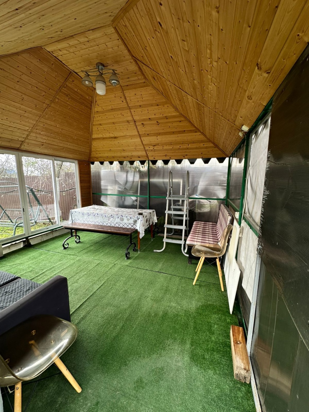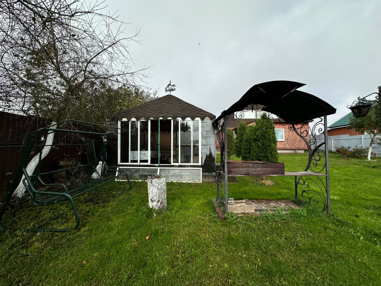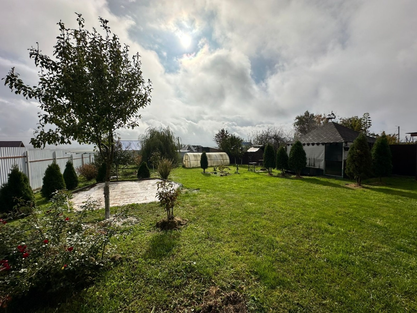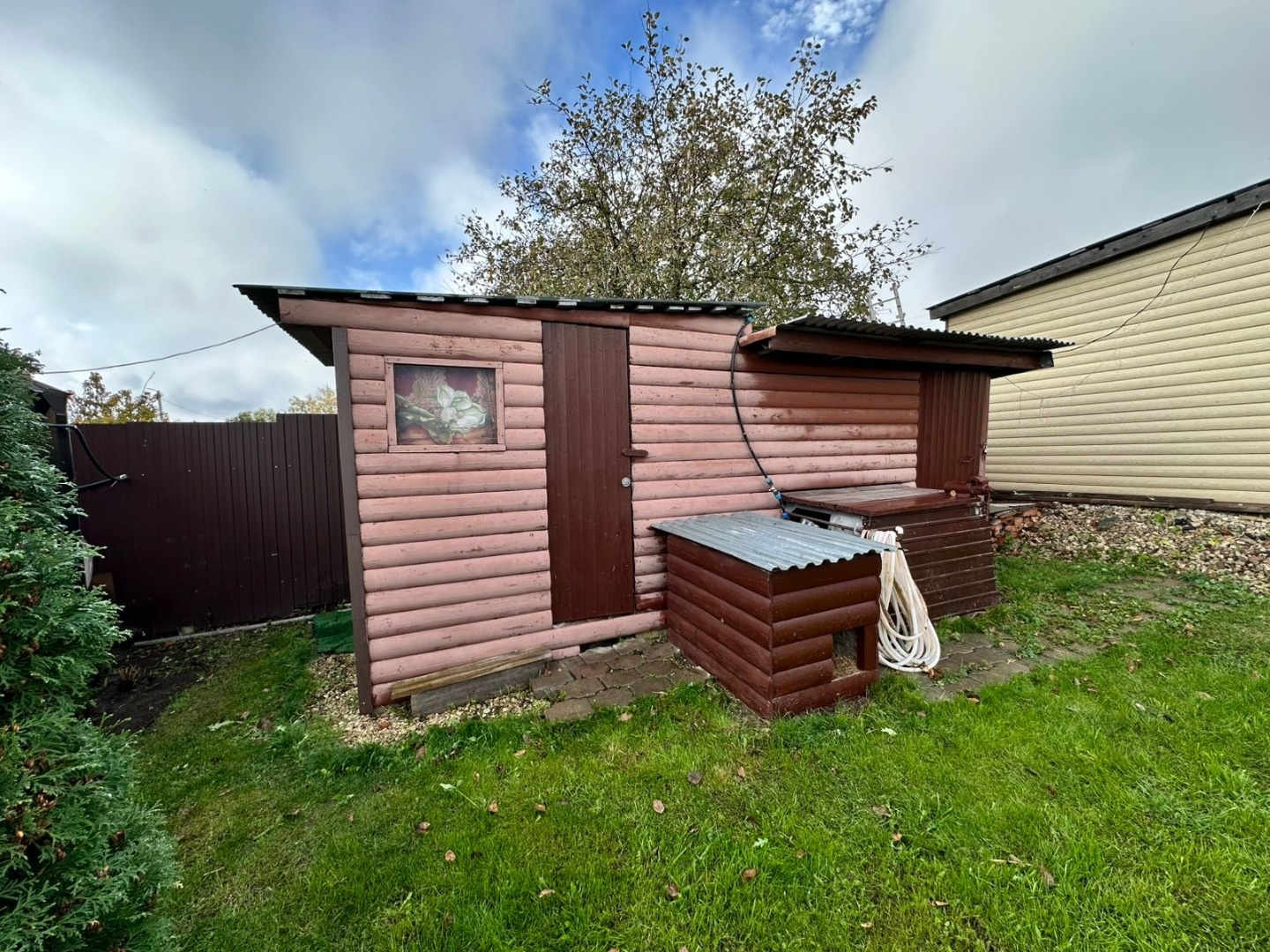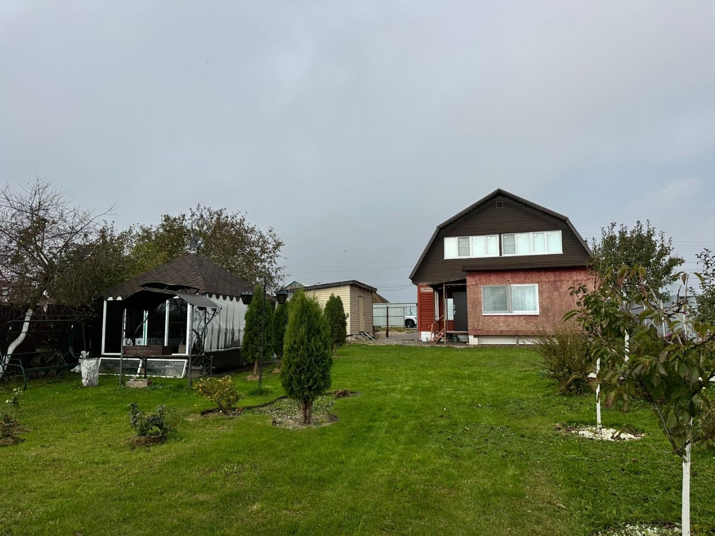 Хозяйственные помещения - сарай, теплица, беседка с мангальной зоной, бассейн, летний душ и туалет. Ухоженная территория с возможностью прохода на две стороны на разные улицы, плодовые деревья, цветы, кустарники. Участок удобной формы общей площадью 8 соток. Территория ежегодно обрабатывается, участок ухоженный. Парковочное место перед домом.