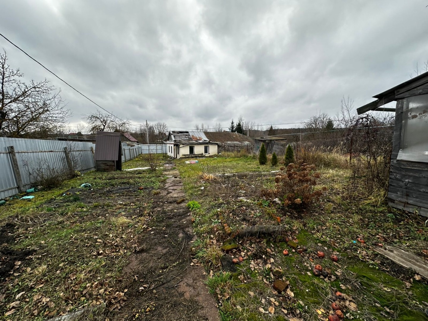 На участке старый дом - под снос. Установлен забор, ворота для въезда транспорта.